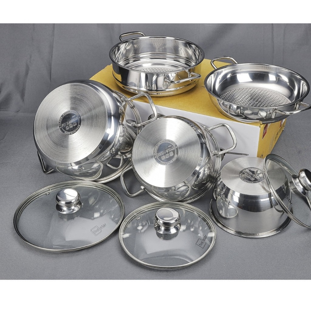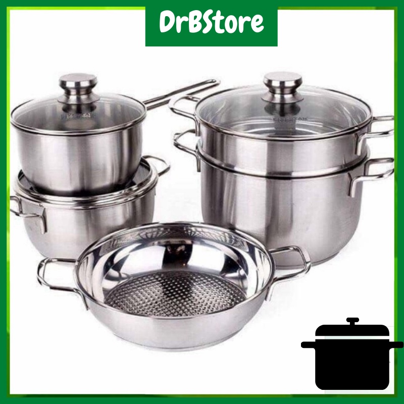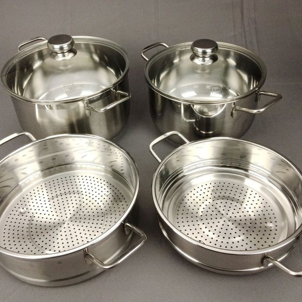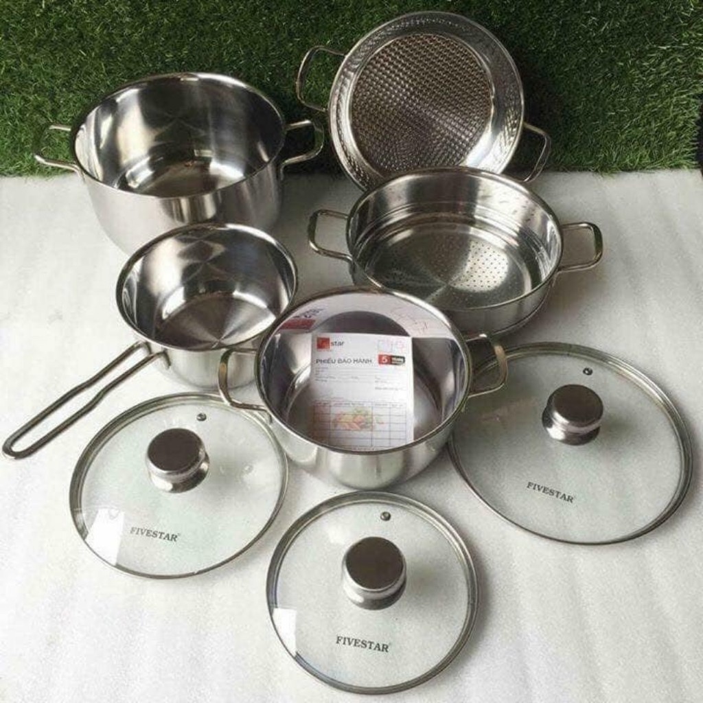 Nhà cửa & Đời sống > Dụng cụ nhà bếp > Nồi || Bộ nồi inox đáy 3 lớp fivestar vung kính 5 nồi đáy từ ( xửng hấp, nồi, chảo) bảo hành 5 nămCòn hàng