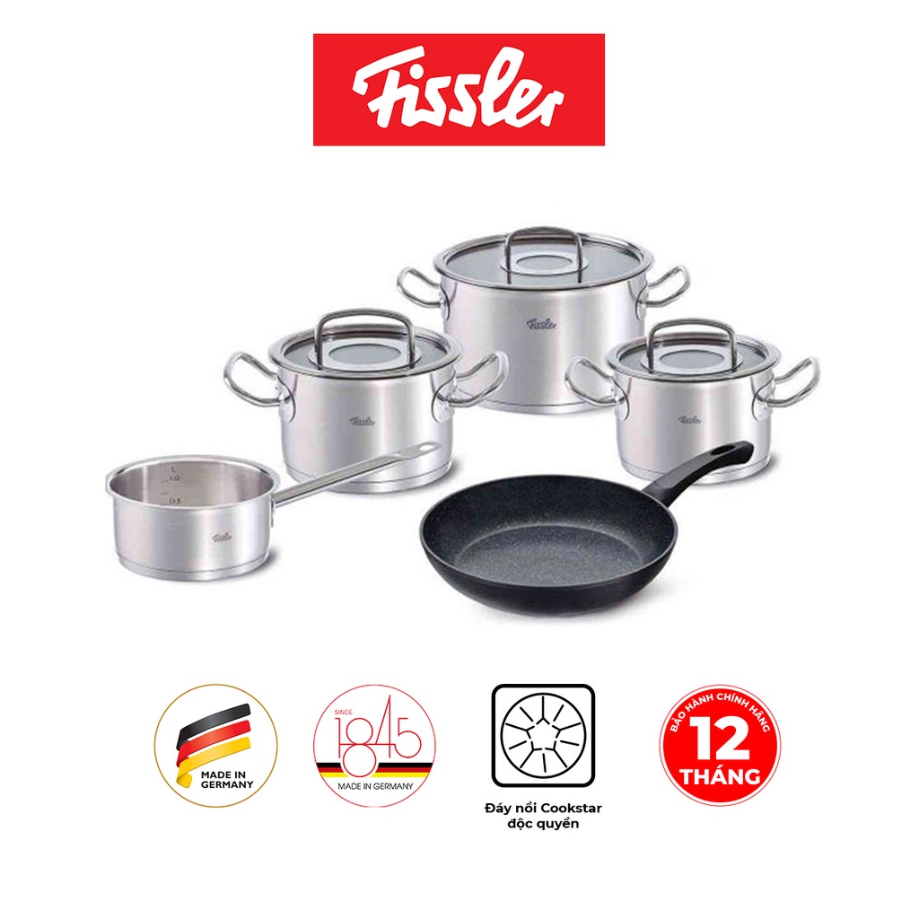 Bộ nồi inox Đức cao cấp Fissler Profi 4 nồi và 1 chảo chống dính cao cấp Stardust 24cm, hàng chính hãng 100% SX tại Đức