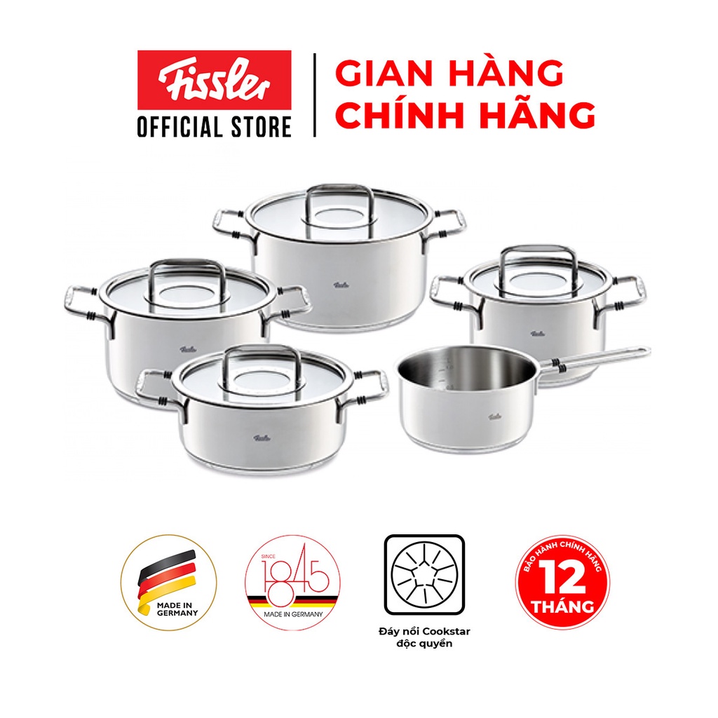 Bộ nồi inox Đức cao cấp Fissler Bonn 5 món hàng chính hãng 100% sản xuất tại Đức, an toàn cho sức khỏe, bền, đẹp