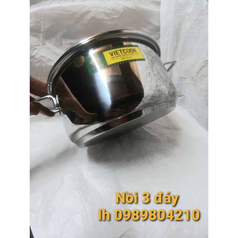 Nồi inox đun bếp từ size 24,nồi 1 đáy 3 đáy nắp kính nắp inox,Nồi inox bếp từ size 24 Vietcook.CAM KẾT CHÍNH HÃNG