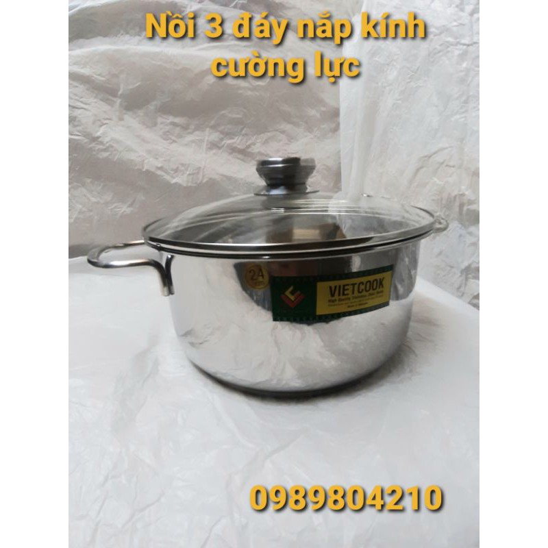 # Nồi inox size 24 Vietcook ,có hàng 1 đáy ,3 đay, Riêng nồi 3 đáy có nắp kính và nắp inox cho các bạn lựa chon.*Nồi nắp inox dày dặn sáng ,bóng ,nồi nắp kính ,kính cường lực dày 4 ly chống vỡ