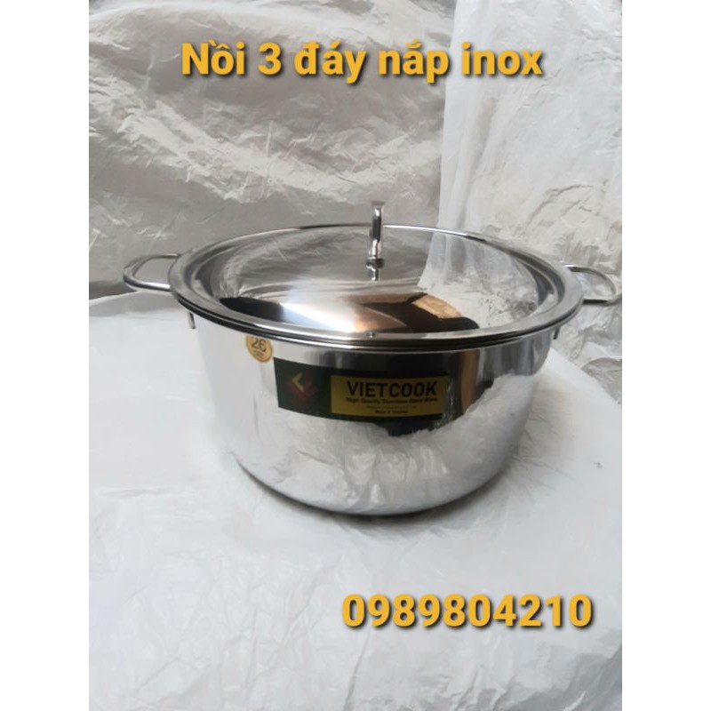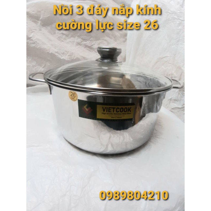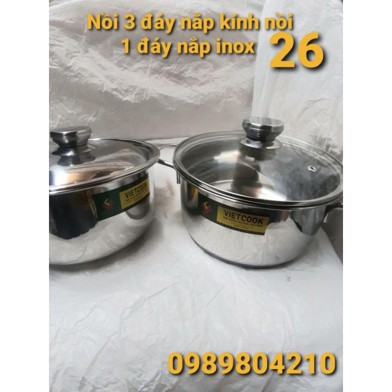 # Nồi inox size 26 Vietcook ,có hàng 1 đáy ,3 đay, Riêng nồi 3 đáy có nắp kính và nắp inox cho các bạn lựa chon.*Nồi nắp inox dày dặn sáng ,bóng ,nồi nắp kính ,kính cường lực dày 4 ly chống vỡ