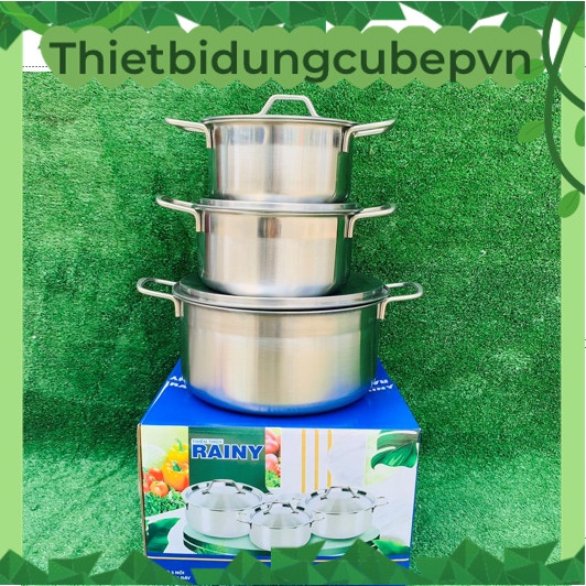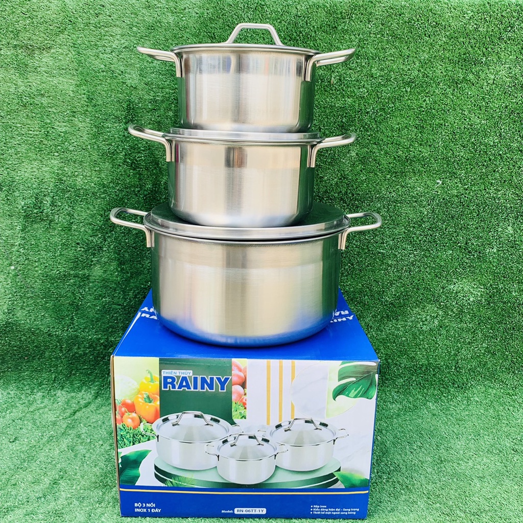 Bộ nồi inox dùng bếp từ, ga, hồng ngoại 3 món size 16cm, 20cm, 24cm 1 đáy - hàng xả kho