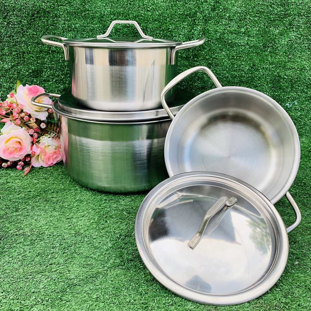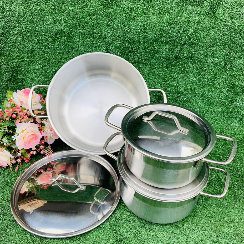 Bộ nồi inox dùng bếp từ, ga, hồng ngoại 4 món size 16cm, 20cm, 24cm 1 đáy - hàng xả kho 1 đáy - hàng xả kho