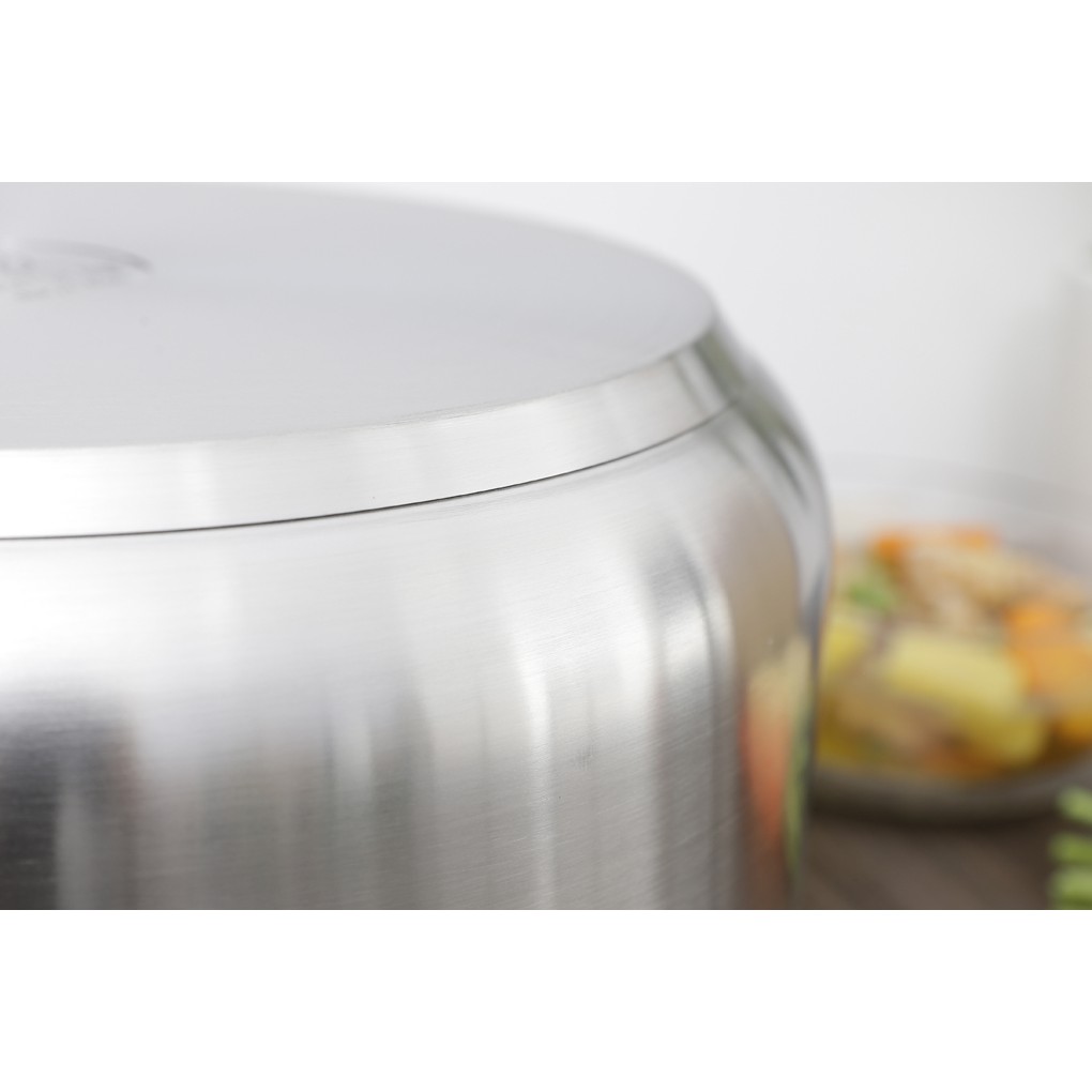 Chất liệu inox 430 sáng bóng ,ít bị oxy hóa , bền, chống ăn mòn, không gỉ không độc hại, cực kỳ tiện dụng trong việc chế biến các món luộc, hầm với số lượng lớn