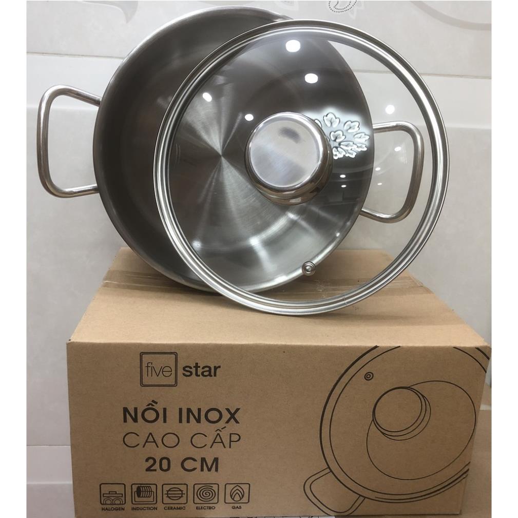Nồi Inox Fivestar 3 Đáy Nắp Kính 20cm BH 5 NĂM