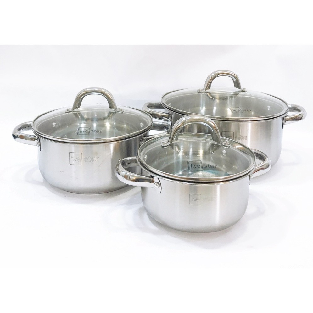 Nhà cửa & Đời sống > Dụng cụ nhà bếp > Nồi || Bộ nồi inox Fivestar 3 món nắp kính 3 đáy sandwich dùng được bếp từ bếp từ , gas, hồng ngoạiCòn hàng