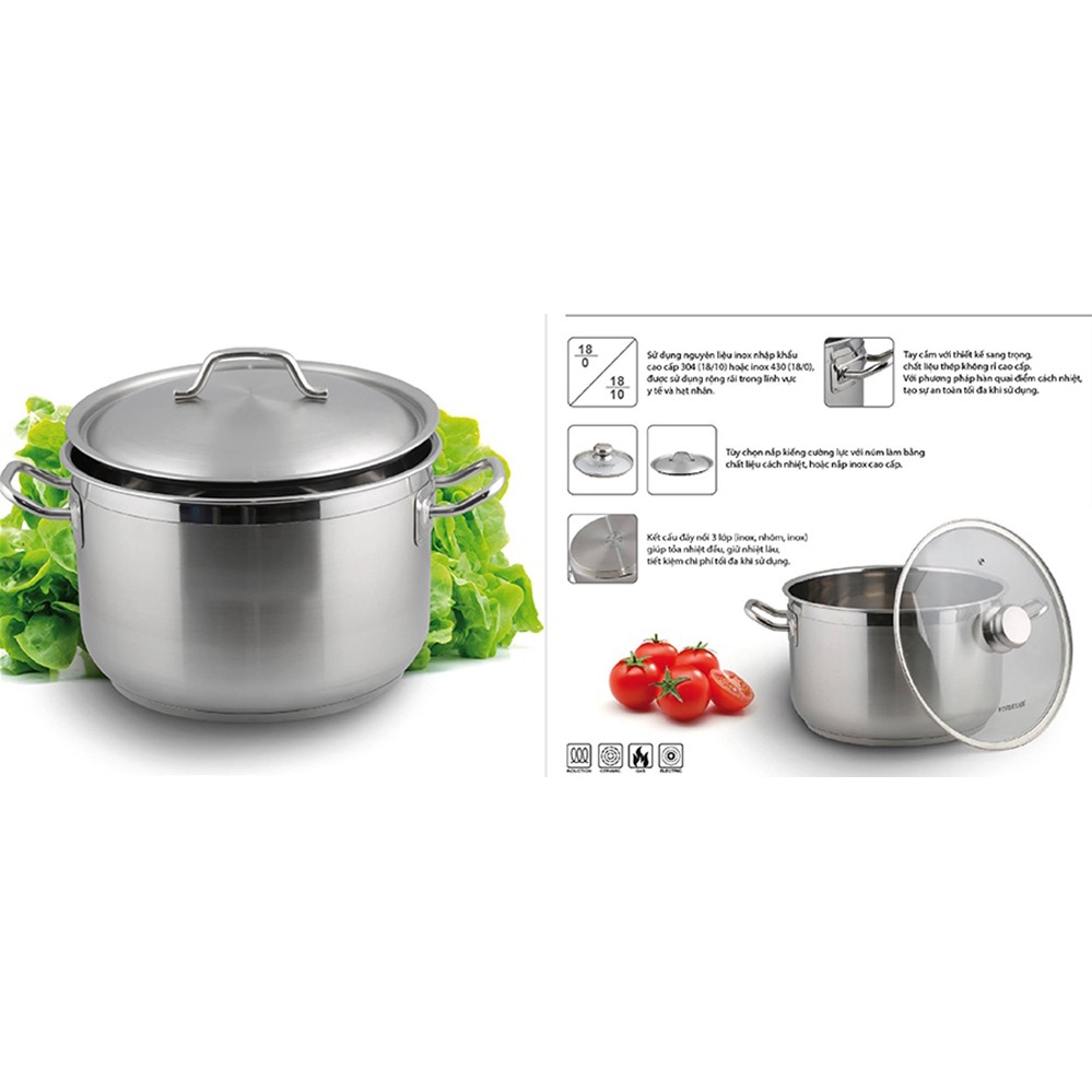 NỒI INOX FIVESTAR 30CM+ Sản phẩm sử dụng được trên bếp gas, bếp hồng ngoại và bếp từ.
