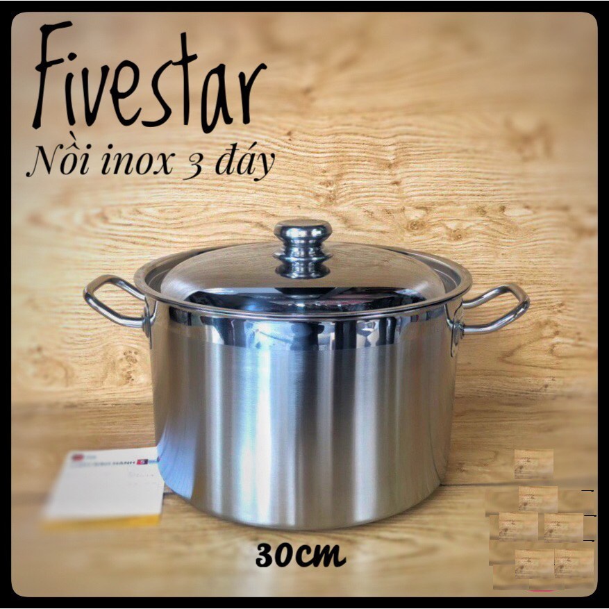 Nồi inox Fivestar 30cm 3 đáy - Nồi luộc gà - Nắp inox - bảo hành 5 năm - nấu được bếp từ - Alo Bếp xinh
