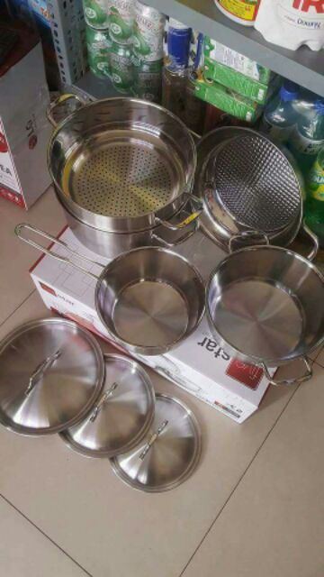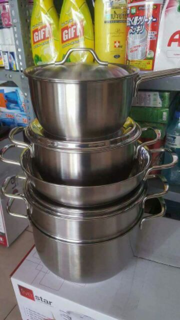 Nhà cửa & Đời sống > Dụng cụ nhà bếp > Nồi || Bộ nồi inox fivestar 5 món 3 đáy nắp inox.Còn hàng