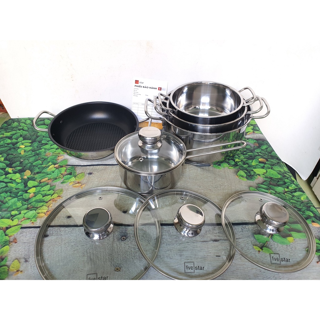 Bộ nồi Inox Fivestar 5 Món Nắp Kính 5 Đáy