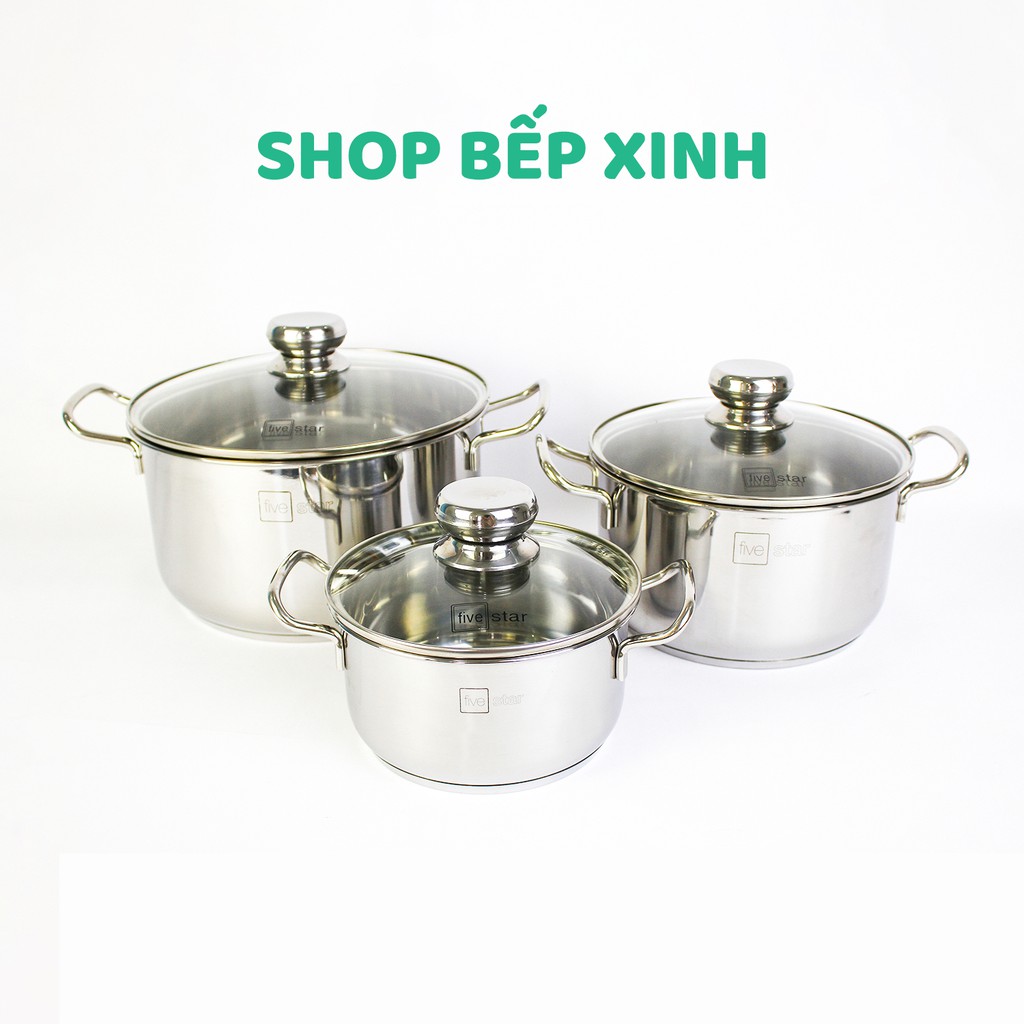 Bộ nồi Fivestar inox 430 nắp kính 3 đáy dùng được mọi bếp - nồi inox bếp từ cao cấp
