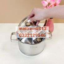 * Cấu tạo: 3 đáy, sử dụng tốt trên bếp từ, gas, hồng ngoại,...