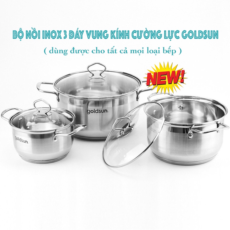 Bộ nồi inox Goldsun 3 đáy GE35/ GE39 và 5 đáy GE41/ ĐÁY TỪ DÙNG CHO MỌI LOẠI BẾP- HÀNG CÔNG TY