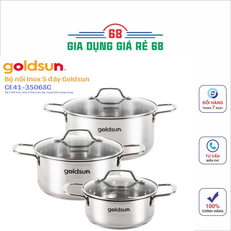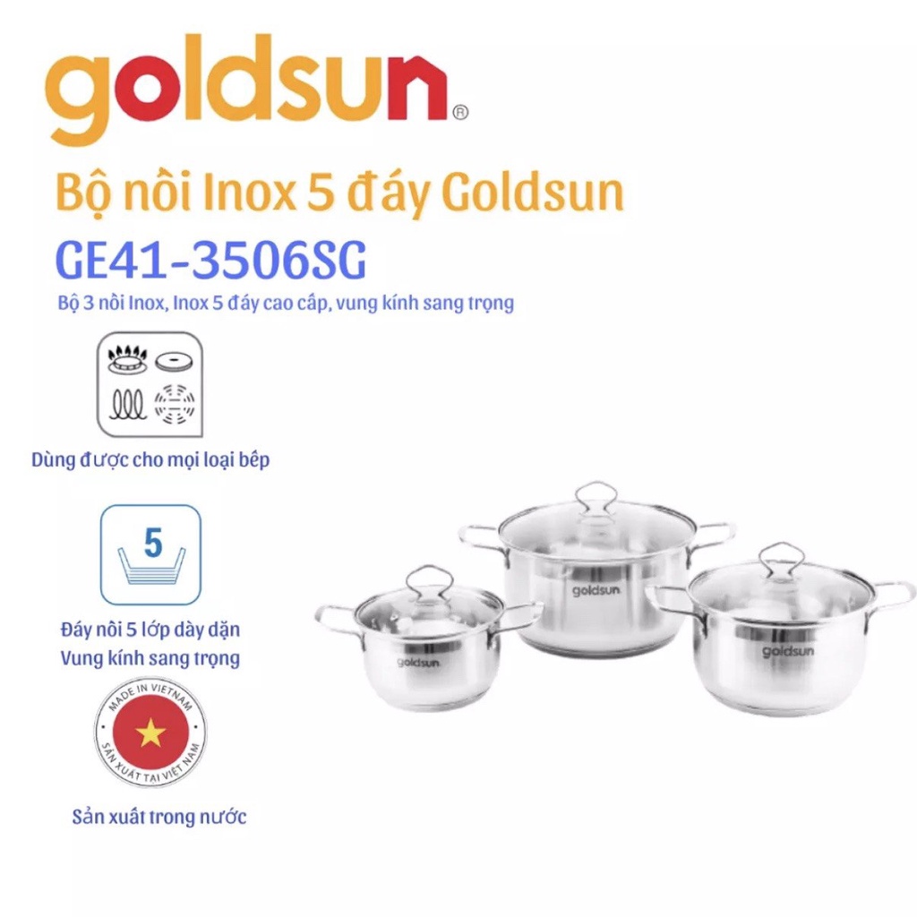 Nhà cửa & Đời sống > Dụng cụ nhà bếp > Nồi || Bộ nồi inox Goldsun 3 đáy và 5 đáy GE35/ GE39/ GE41 ĐÁY TỪ DÙNG CHO MỌI LOẠI BẾP- HÀNG CHÍNH HÃNGCòn hàng