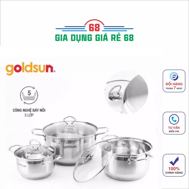 Bộ nồi inox Goldsun 3 đáy và 5 đáy GE35/ GE39/ GE41 ĐÁY TỪ DÙNG CHO MỌI LOẠI BẾP- HÀNG CHÍNH HÃNG