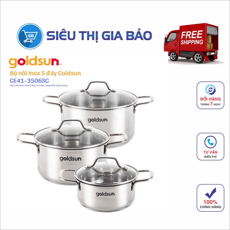 Nhà cửa & Đời sống > Dụng cụ nhà bếp > Nồi || Bộ nồi inox Goldsun 3 đáy và 5 đáy GE35/ GE39/ GE41 ĐÁY TỪ DÙNG CHO MỌI LOẠI BẾP- HÀNG CHÍNH HÃNGCòn hàng