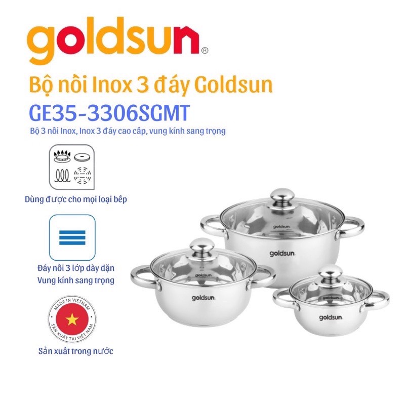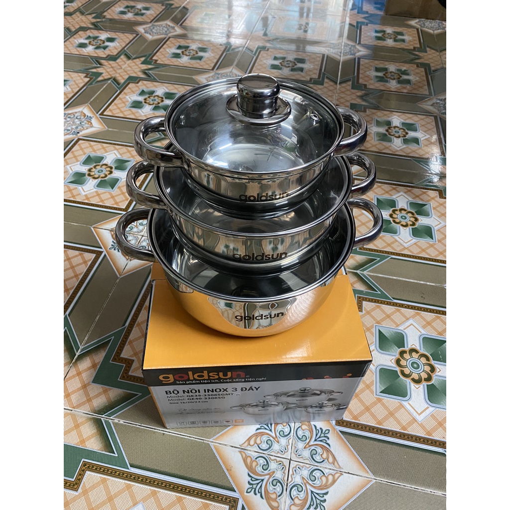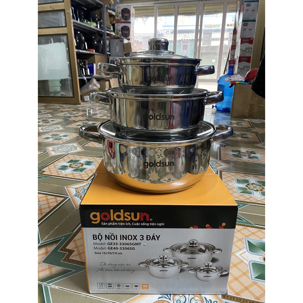 Nhà cửa & Đời sống > Dụng cụ nhà bếp > Nồi || Bộ nồi inox Goldsun 3 đáy và 5 đáy GE35/ GE39/ GE41 ĐÁY TỪ DÙNG CHO MỌI LOẠI BẾP- HÀNG CHÍNH HÃNGCòn hàng