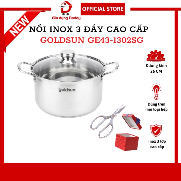 Nồi inox Goldsun GE43-1302SG, Đường kính 26cm, Nồi luộc gà inox dùng trên mọi loại bếp, Bảo hành 12 tháng