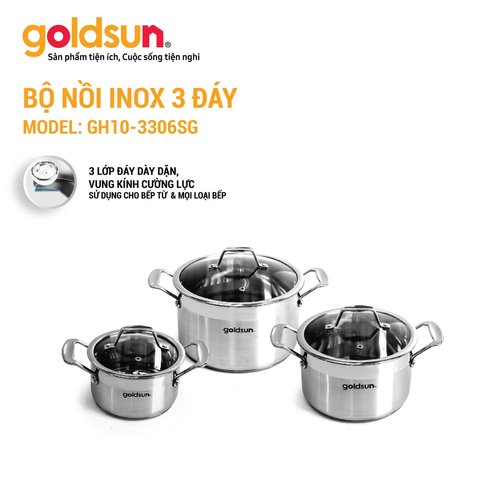 Nhà cửa & Đời sống > Dụng cụ nhà bếp > Nồi || Bộ nồi inox Goldsun GH10-3306SGCòn hàng