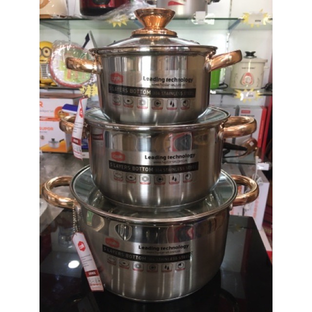 Nhà cửa & Đời sống > Dụng cụ nhà bếp > Nồi || Bộ Nồi Inox HQSTAR HQ-223 [CHÍNH HÃNG] - BẢO HÀNH 12 THÁNGCòn hàng