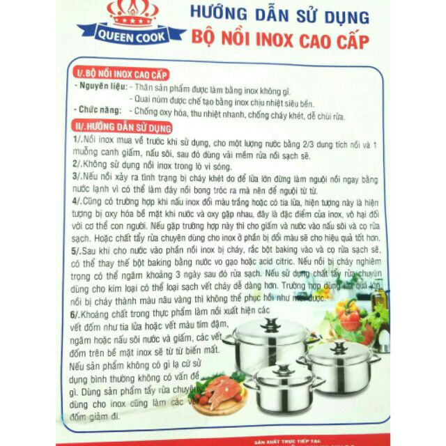 Nhà cửa & Đời sống > Dụng cụ nhà bếp > Nồi || Bộ nồi inox Kim Cương (Queen Cook)Còn hàng