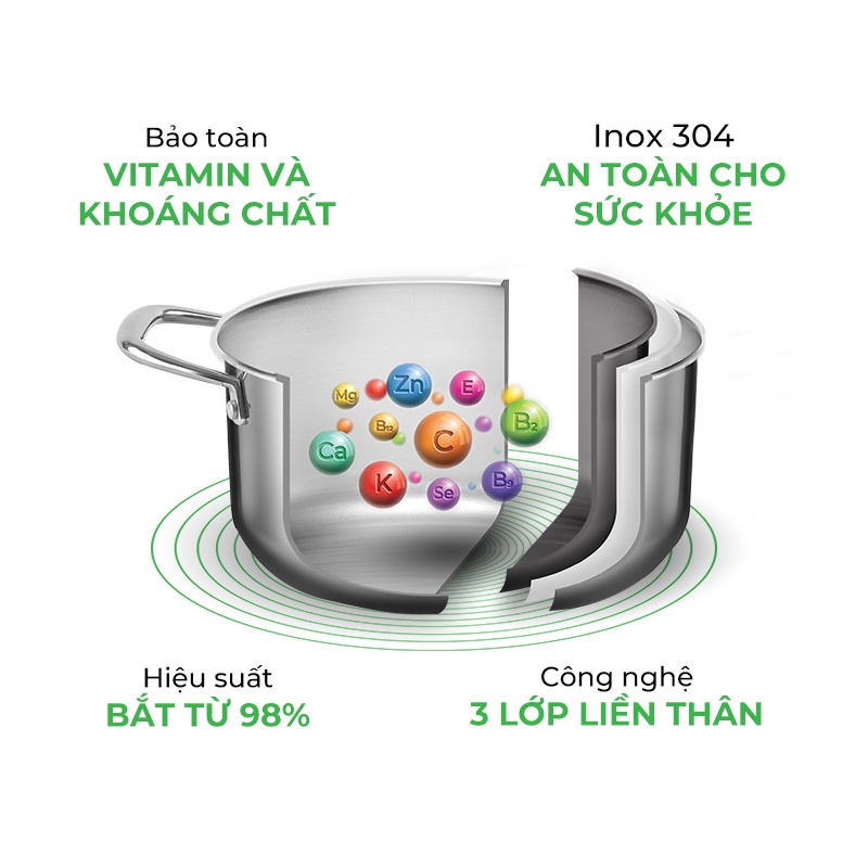 - Truyền nhiệt đều, giữ nhiệt lâu, hiệu ứng ủ nhiệt 3D làm đồ ăn chín mềm ngon và hạn chế thất thoát Vitamin