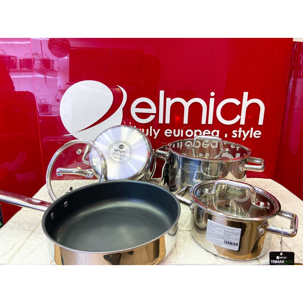 Bộ nồi inox liền khối Elmich Trimax ECO EL-8003 size 16, 18, 22, chảo 26cm