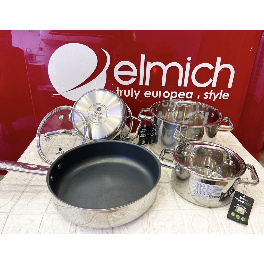 Giới thiệu Bộ nồi inox liền khối Elmich Trimax ECO EL-8003 size 16, 18, 22, chảo 26cm