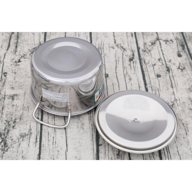Nồi chất liệu inox sáng bóng, bền tốt, dễ vệ sinh.Nồi 24cm x 12 cm, thành cao.