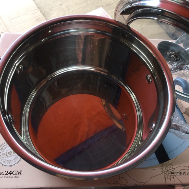 Bộ nồi gồm 4 chiếc từ 18cm/20cm/22cm/24cm nồi dày vung kính dễ theo dõi thức ăn nấu bên trong.