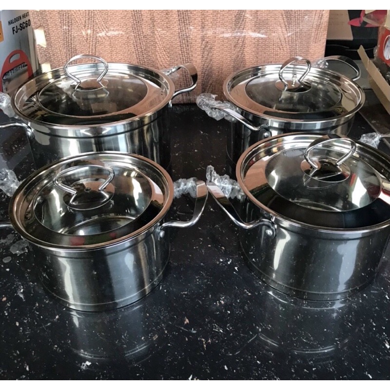 Bộ nồi inox gồm 4 cái vung kính nồi dày bóng đẹp dùng cho các loại bếp kể cả bếp đa năng bếp gas bếp điện từ .Các size nồi từ 18cm-20cm-22cm-24cm giúp người nội trợ lựa chọn phù hợp cho việc nấu các thức ăn nhiều hay ít.