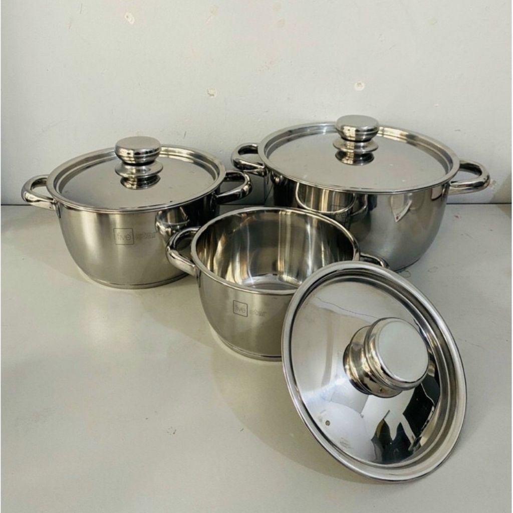 Bộ nồi inox đáy từ 3 đáy, 3 món vung inox kính dùng được trên mọi loại bếpXuất xứ : Việt nam