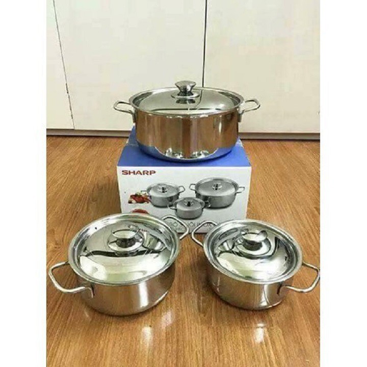 Bộ Nồi INOX SHARP 3 Nồi Nhiều Cỡ Phù Hợp Mọi Loại Bếp