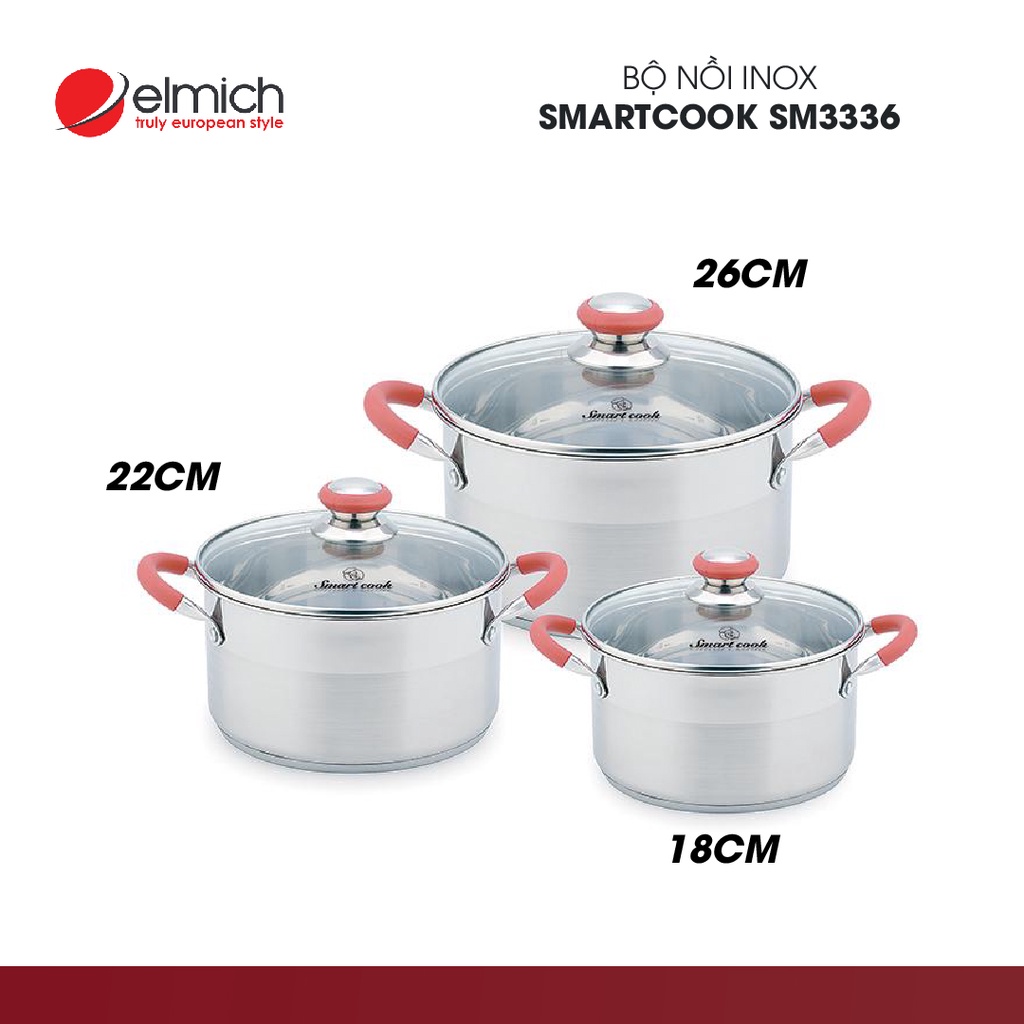 Bộ Nồi Inox Smart Cook 3 chiếc cỡ 18,22,26cm SM3336 | Hàng Chính Hãng | 2353336