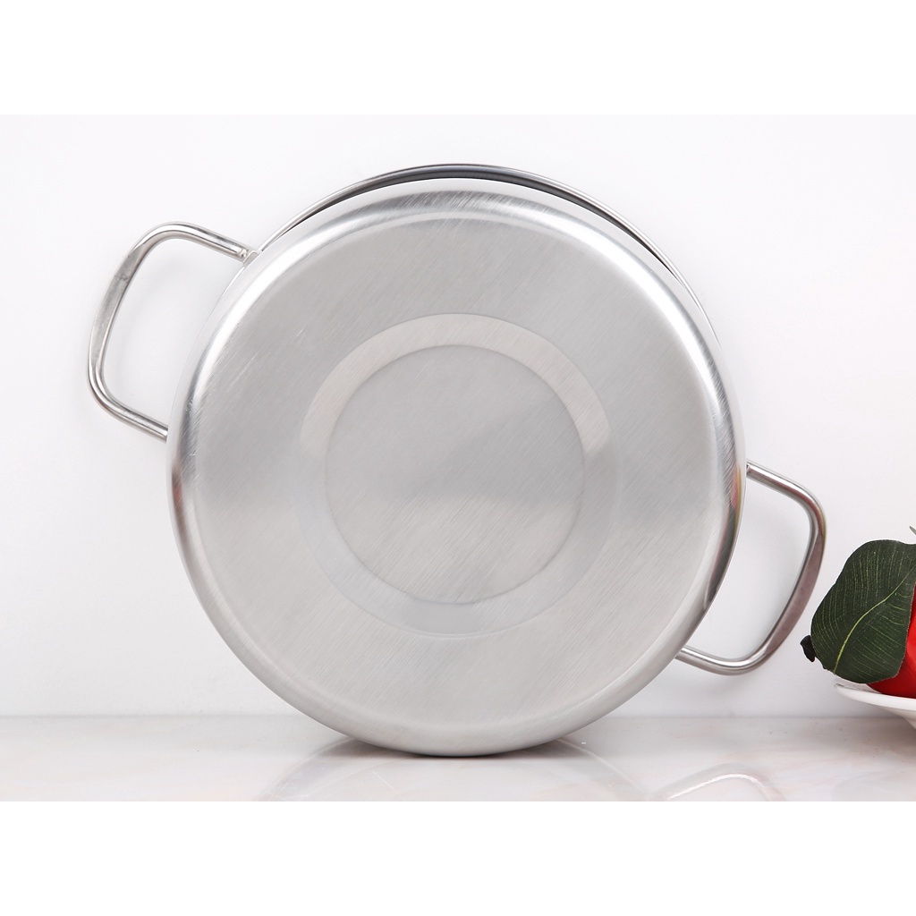 Inox 430 chống ăn mòn cao, không phản ứng với thức ăn. Đáy phẳng, nấu thức ăn chín nhanh chóng.