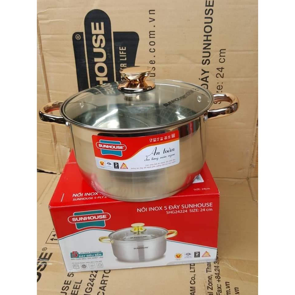 Nồi inox 5 đáy Sunhouse SHG24224 chính hãng 100%, chất lượng 100%✔️ Nồi inox 5 đáy chất liệu inox 201 sáng bóng, ít bị oxy hóa, nấu ăn an toàn 🤗