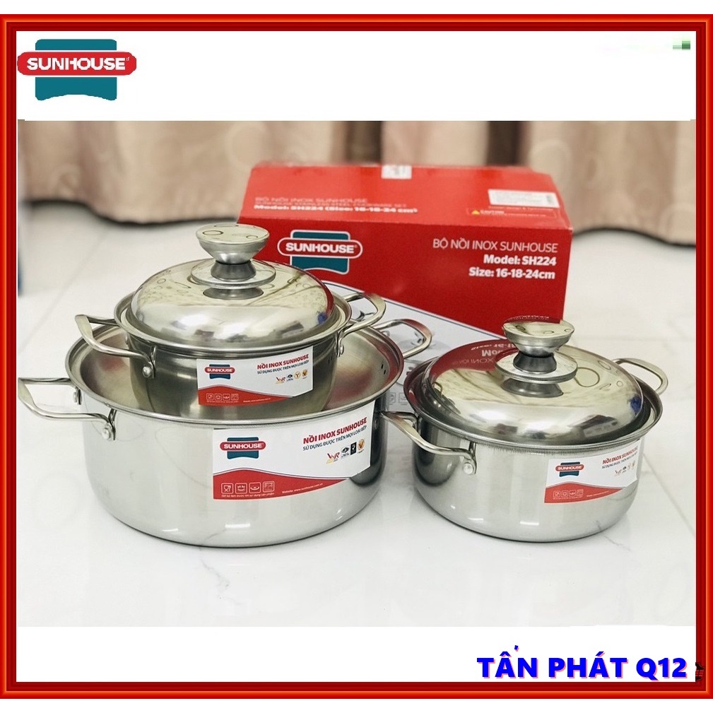 Nhà cửa & Đời sống > Dụng cụ nhà bếp > Nồi || bộ nồi inox sunhouse DÙNG ĐƯỢC BẾP TỪ (SH224)Còn hàng