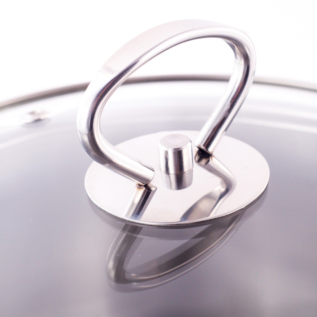 - Vung kính cường lực trong suốt khiến cho người dùng không khó khăn khi để ý được thực phẩm lúc đang nấu nướng, nắp kính của nồi Sunhouse SH 888 có thiết kế vành vung bằng thép không gỉ chịu nhiệt lượng và chống va chạm tốt hơn.
