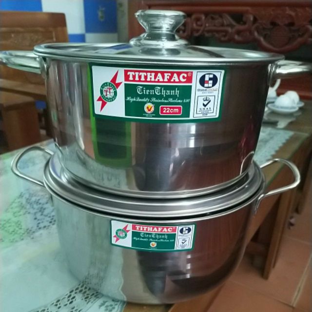 - Thương hiệu TITHAFAC đã khẳng định chất lượng xoong, nồi, chảo.... inox trên thị trường- nồi 22cm cao 11,3cm