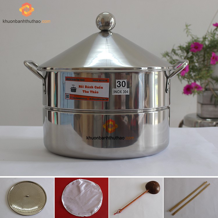 Bộ nồi inox tráng bánh cuốn đa năng 30cm