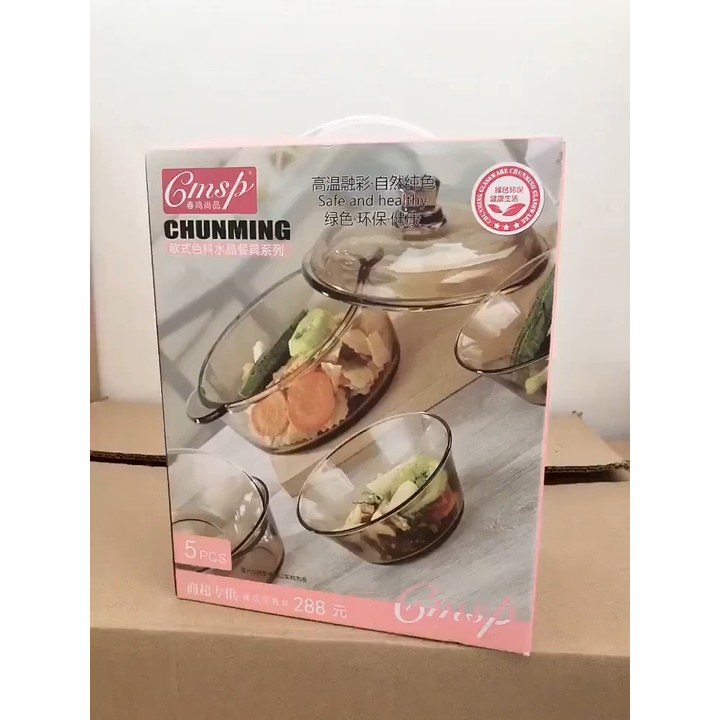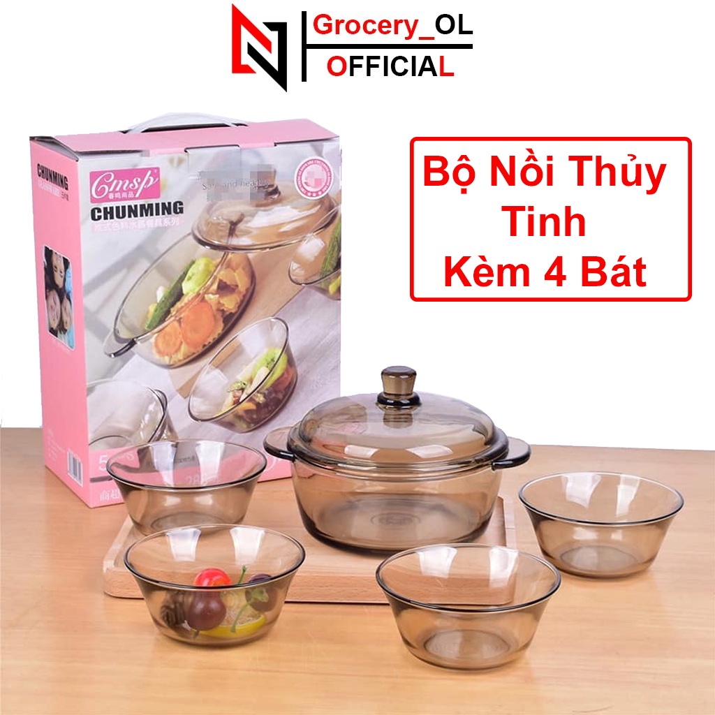 Bộ Nồi Kèm Bát Thủy Tinh 5 Món Cao Cấp, Sang Trọng, Cực Đẹp