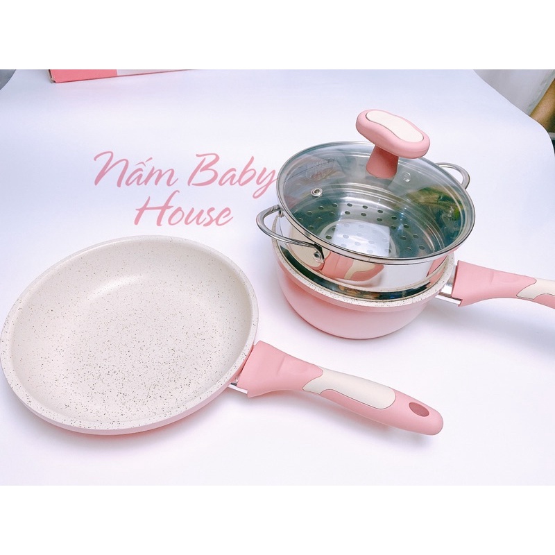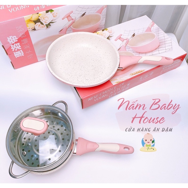 Bộ nồi kèm hấp chống dính, chảo chống dính cao cấp cho bé