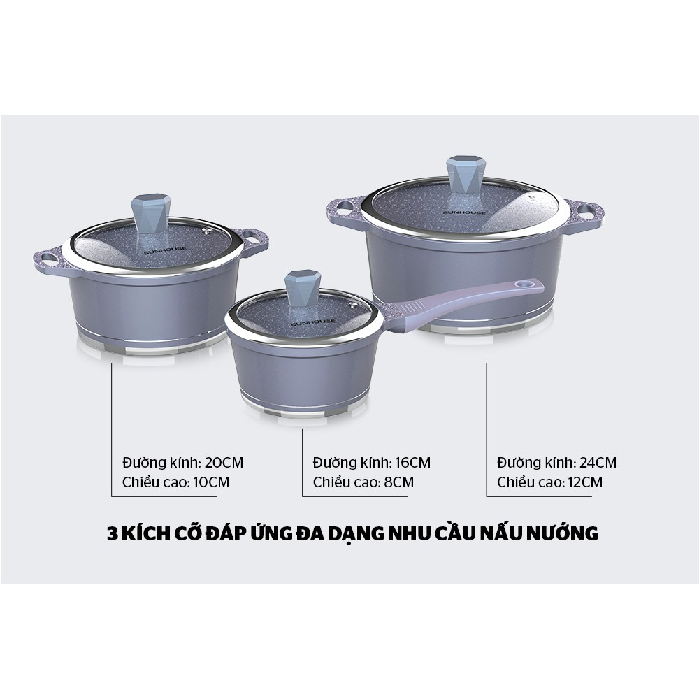 Nhà cửa & Đời sống > Dụng cụ nhà bếp > Nồi || Bộ nồi kèm quánh VÂN ĐÁ ĐÁY TỪ CHỐNG DÍNH sunhouseCòn hàng