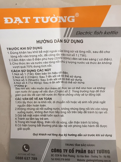 Nồi kho cá , nấu cháo đa năng Đạt Tường hàng chính hãng bảo hành 12 tháng