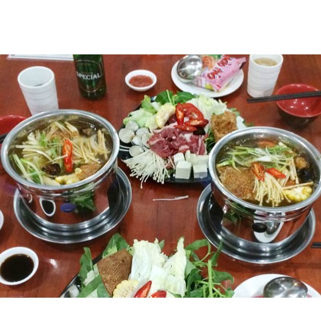 - Nồi lẩu được làm bằng inox an toàn cho sức khỏe, có đáy vừa với khuôn đỡ của bếp.