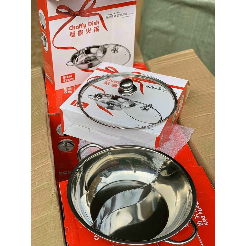 Nồi lẩu 2 ngăn 30cm nấu được bếp từ nhé có nắp kính (ảnh thật)