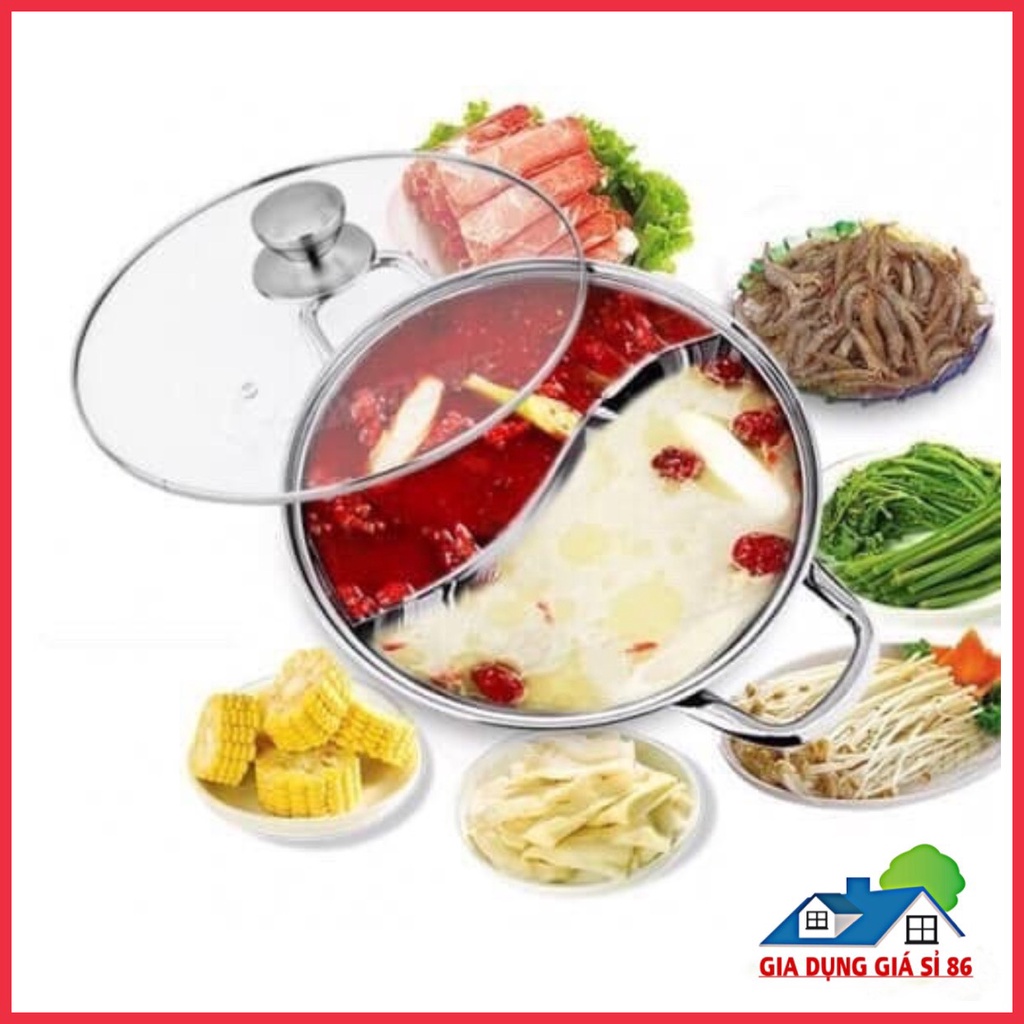 Nồi lẩu 2 ngăn 30cm và 32cm, nấu được bếp từ nhé có nắp kính (ảnh thật)