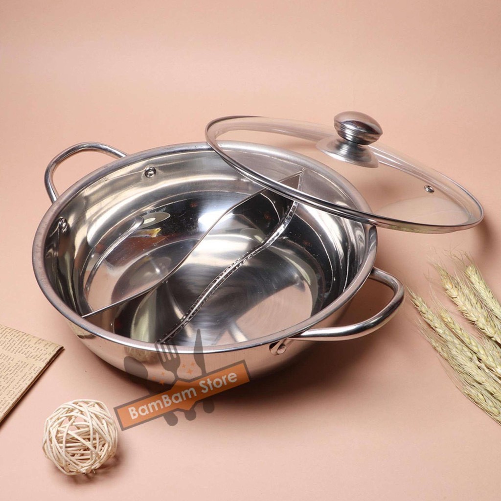 Nồi lẩu 2 ngăn 30cm và 32cm, nấu được bếp từ nhé có nắp kính (ảnh thật)