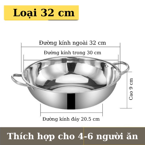 - Nồi lẩu 2 ngăn size 30-32 cm có nắp kính sẽ giúp sôi nhanh hơn